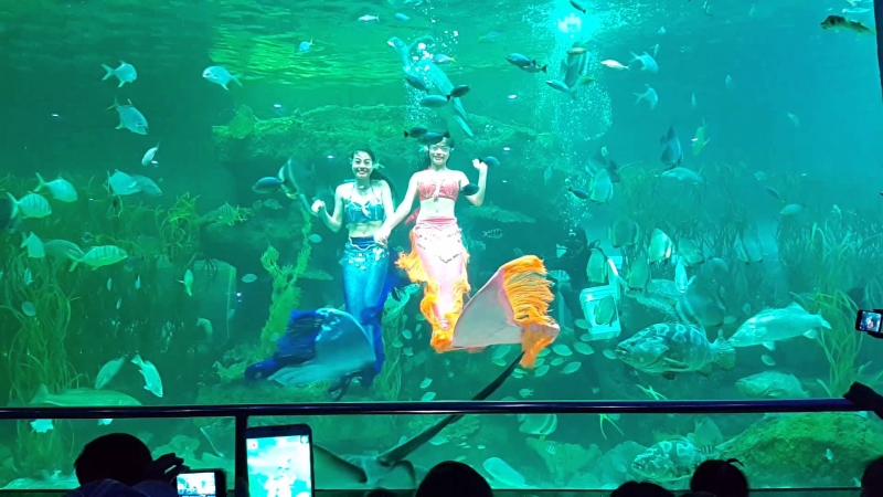 • Thủy cung: di chuyển bằng hệ thống thang cuốn để khám phá Thủy Cung và chiêm ngưỡng các loài sinh vật biển trong lòng đường hầm hiện đại, Quý khách sẽ có cảm giác như đang được du ngoạn dưới đáy đại dương, và vui đùa cùng muôn vàn loài sinh vật biển rực rỡ sắc màu. Thưởng thức 2 chương trình biểu diễn đặc sắc “nàng tiên cá” và “cho cá ăn”
