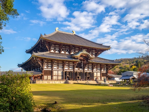 Đền Todaiji – “Đền lớn phía Đông”, nơi Phật tổ tọa thiền, tự hào là công trình kiến trúc bằng gỗ lớn nhất thế giới, trong đền có pho tượng bằng đồng tên là Vairocana, còn được người Nhật thường gọi là đại tượng Phật Daibutsu.