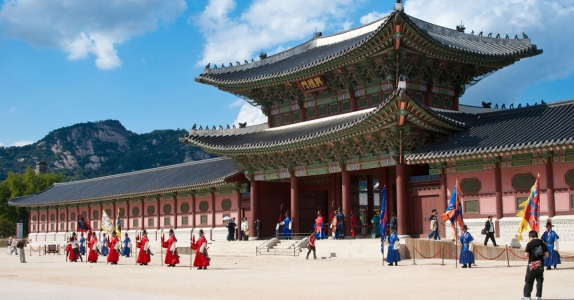Sau bữa trưa với món gà tần sâm tươi. Quý khách sẽ tiếp tục tham quan cung điện Gyeongbok - Đây là nơi ở chính của Hoàng gia trong suốt vương triều Chosun (1392-1910). Cung điện này có 7225 phòng với thiết triều nguy nga, những sảnh đường tao nhã. Điện Gyeongbok được coi là công trình nghệ thuật nổi tiếng có phong cách và kiến trúc độc đáo và đẹp nhất Seoul, bảo tàng Dân Gian Seoul - là bảo tàng hàng đầu trưng bày văn hóa dân gian Hàn Quốc, thu hút 3 triệu lượt khách tham quan hằng năm. Bảo tàng có hơn 98,000 hiện vật thể hiện đầy đủ và chi tiết những sự kiện, lễ hội chính của đất nước, đặc biệt là những giá trị văn hóa phi vật thể truyền thống cũng như cuộc sống sinh hoạt thường nhật của người dân Hàn Quốc, Nhà Xanh (dinh Tổng Thống) - hay còn gọi là Cheongwadae - là nơi ở và làm việc của Tổng thống Hàn Quốc.