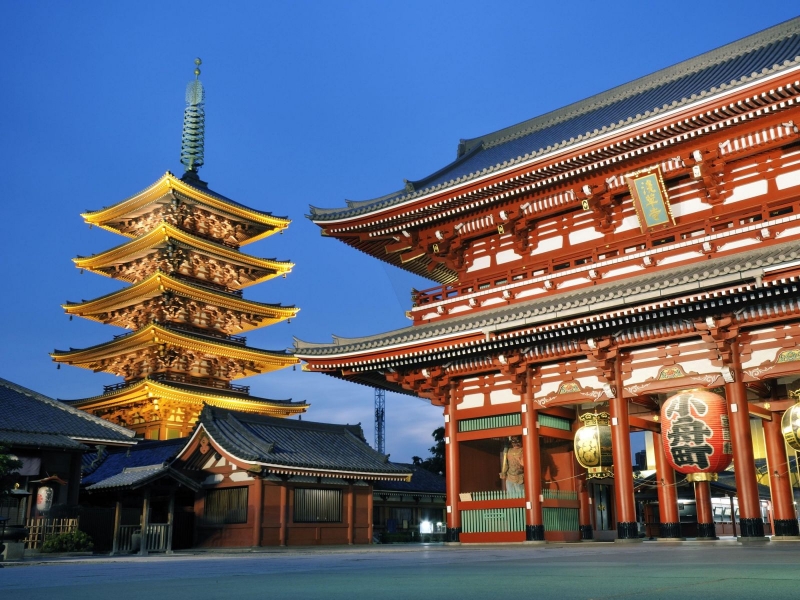 + Ngôi đền Asakusa – một trong những ngôi đền linh thiêng nhất tại Tokyo.