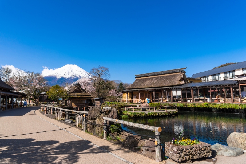 - Oshino Hakkai – ngôi làng cổ bình yên dưới chân núi Phú Sĩ với nhiều nét kiến trúc truyền thống Nhật Bản xưa. Tới Oshino, du khách không chỉ được hòa mình vào không khí thanh bình ở đây, mà còn có thể ngắm nhìn toàn cảnh núi Phú Sĩ tuyệt đẹp. Bên cạnh đó, Oshino còn nổi tiếng bởi hồ nước đặc biệt có cấu tạo phần đáy chủ yếu là nham thạch do quá trình kiến tạo địa chất và được nuôi dưỡng nhờ nguồn nước băng tuyết tan chảy từ đỉnh Phú Sĩ.